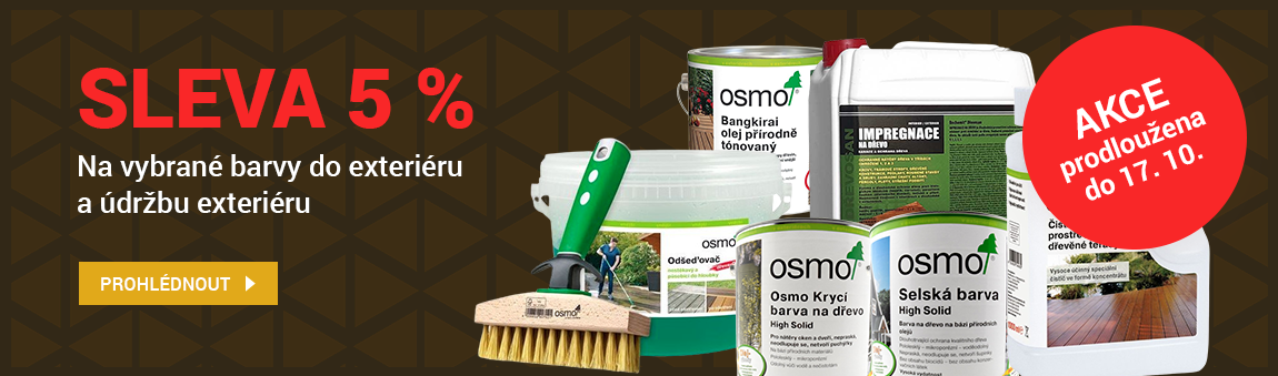 Osmo oleje jsou jedinečnou směsí přírodních olejů a vosků. V naší nabídce najdete jak výrobky pro ošetření interiérových prvků, jak jsou kuchyňské desky, stoly a další dřevěný nábytek, který nám každý den ochotně poslouží. Oplaťte dřevu jeho věrné služby a ošetřete ho Osmo olejem.